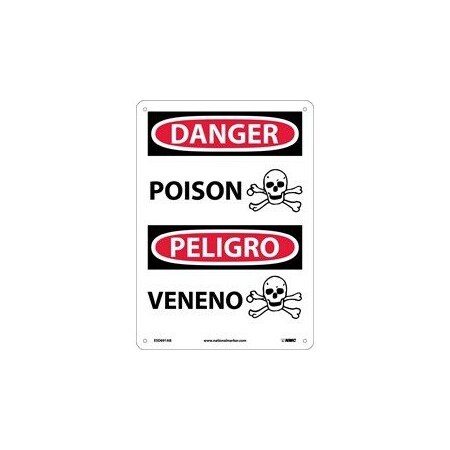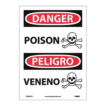 NMC ESD691PB Bilingual OSHA Sign, Legend "DANGER - POISON" with Graphic, 10" Length x 14" Height, Pressure Sensitive Adhesive Vinyl, Black/Red on White