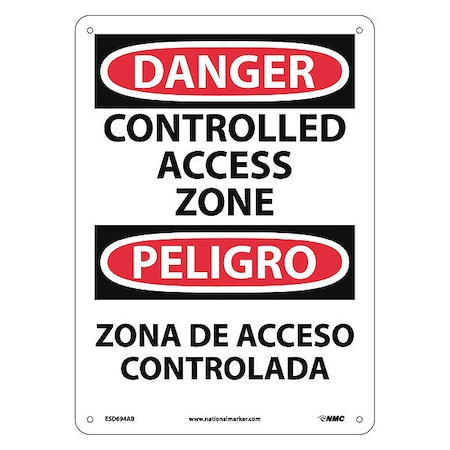 NMC ESD694AB Bilingual OSHA Sign, Legend "DANGER - CONTROLLED ACCESS ZONE", 10" Length x 14" Height, 0.040 Aluminum, Black/Red on White