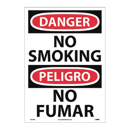 NMC ESD79PC Bilingual OSHA Sign, Legend "DANGER - NO SMOKING", 14" Length x 20" Height, Pressure Sensitive Adhesive Vinyl, Black/Red on White