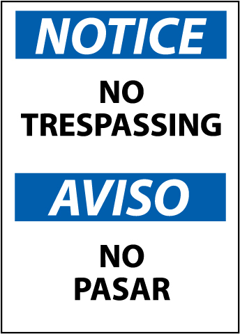 Notice No Trespassing Sign - Bilingual, ESN218RB