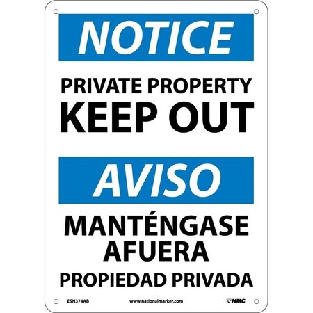 NMC ESN374RB Bilingual OSHA Sign, Legend "NOTICE - PRIVATE PROPERTY KEEP OUT", 14" Length x 10" Height, Rigid Plastic, Black/Blue on White