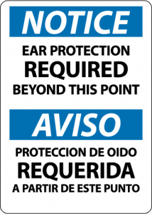 - Header "NOTICE" and Legend "EAR PROTECTION REQUIRED BEYOND THIS POINT"