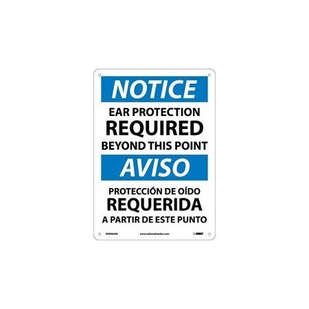 NMC ESN384RB Bilingual OSHA Sign, Legend "NOTICE - EAR PROTECTION REQUIRED BEYOND THIS POINT", 14" Length x 10" Height, Rigid Plastic, Black/Blue on White
