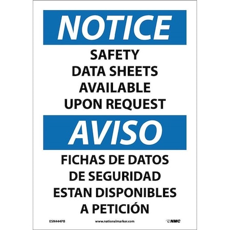 NMC ESN444PB National Marker Safety Sign,ESN444PB Notice, Safety Data Sheets Available Upon Request (Bilingual), 14 Inches x 10 Inches, Ps Vinyl