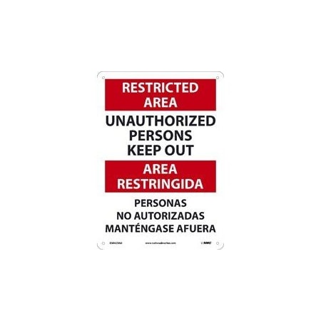 NMC ESRA29AB Bilingual OSHA Sign, Legend "RESTRICTED AREA - UNAUTHORIZED PERSONS KEEP OUT", 10" Length x 14" Height, 0.040 Aluminum, Black/Red on White