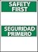 NMC ESSF1AB Bilingual OSHA Sign, Legend "SAFETY FIRST", 10" Length x 14" Height, 0.040 Aluminum, Green on White
