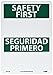 NMC ESSF1RB Bilingual OSHA Sign, Legend "SAFETY FIRST", 10" Length x 14" Height, Rigid Plastic, Green on White