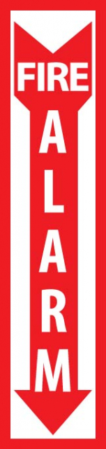 - Visibility: the legend “FIRE ALARM” is printed in legible text to ensure better readability even in low lighting conditions. The down arrow graphic makes it easy to understand the message