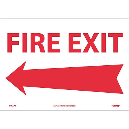 NMC FELAPB FIRE EXIT Sign – 14 in. x 10 in. Pressure Sensitive Vinyl Sign with Left Arrow Graphic, Red Text on White Base
