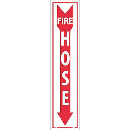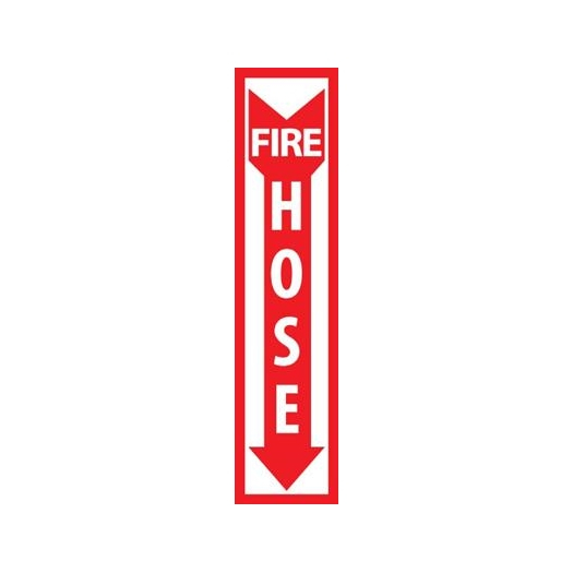 - Specifications: the pressure sensitive vinyl fire hose safety sign is 0.004 in. thick, 4 in. wide and 18 in. high. It features white text on red base, giving better visibility. The sign is graffiti proof and resistant to UV and chemicals