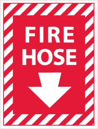 - Highly Visible: the legend “FIRE HOSE” is printed in legible text to ensure better readability even in low lighting conditions. The down arrow graphic makes it easy to understand the message