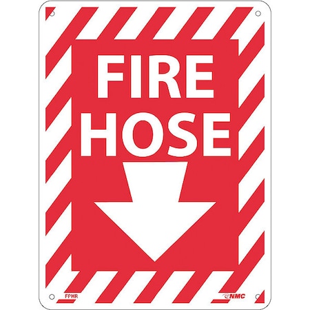 NMC FPHR FIRE Hose Sign - 9 in. x 12 in. Rigid Plastic Hose Locator Sign with Arrow Graphic, White Text on Red Base