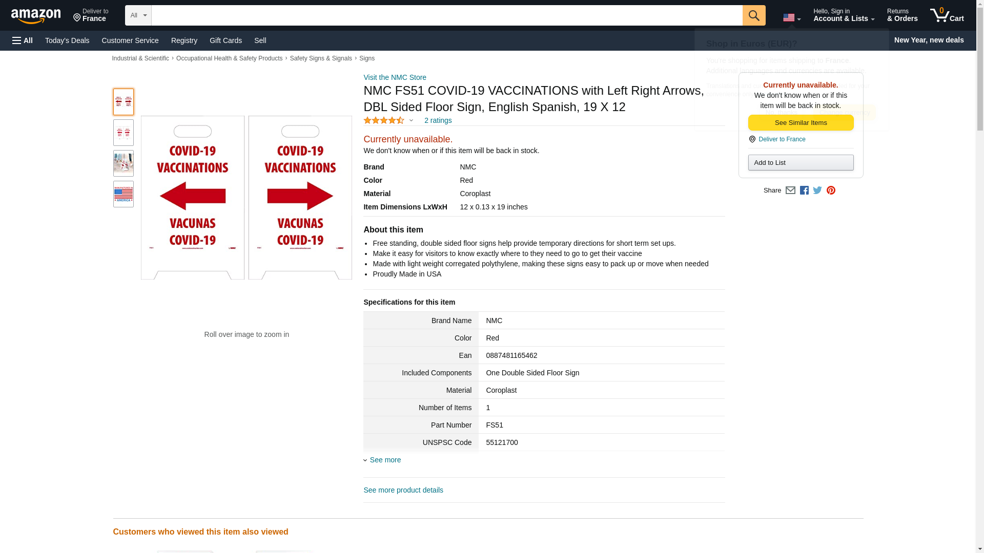 Order FS51 by NMC "Covid-19 Vaccinations" (Eng/Esp), Double-Sided Floor Sign - US Mega Store