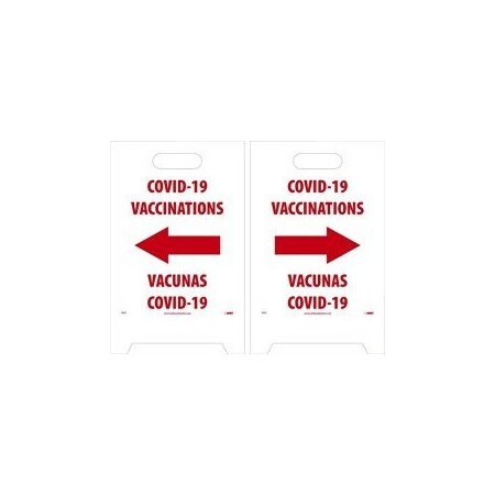NMC FS51 COVID-19 VACCINATIONS with Left Right Arrows, DBL Sided Floor Sign, English Spanish, 19 X 12