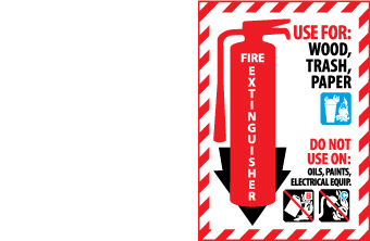 - High Visibility: the sign has the legend “FIRE EXTINGUISHER” in clear, bold letters along with a down arrow graphic and pictures of types of fire for which the fire extinguisher can be used. It is visible in most lighting conditions