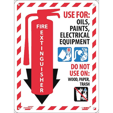 NMC FXPMBCR FIRE Extinguisher Sign – 9 in. x 12 in. Rigid Plastic Fire Safety Sign with Pictorial Class Marker, Red/Black/Blue on White