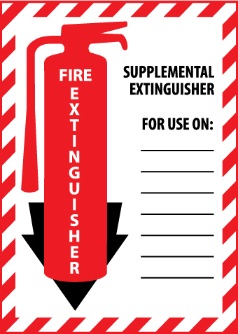 - Visibility: the legend “SUPPLEMENTAL EXTINGUISHER” is printed along with a fire extinguisher and down arrow graphic. It is clearly readable in most lighting conditions and even from a distance