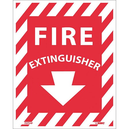 NMC FXPS4P FIRE EXTINGUISHER Sign - 4 in. x 5 in. Pressure Sensitive Vinyl Fire Safety Sign with Arrow, White Text on Red Base