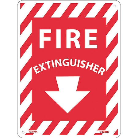 NMC FXWMA FIRE Extinguisher Sign - 9 in. x 12 in. Standard Aluminum Fire Safety Sign with Arrow, White Text on Red Base