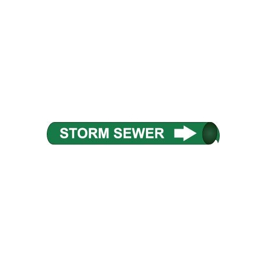 NMC G4101 "Storm Sewer" Strap-On Pipe Marker, Fits 8"-10" Pipe, White/Green