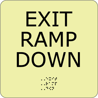 NMC - National Marker Company EXIT RAMP DOWN, 8X8, GLOW ADA Glow ADA Signs These signs feature Grade II dome shaped Braille and 1/32 in raised letters.