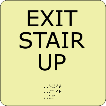 NMC - National Marker Company EXIT STAIR UP, 8X8, GLOW ADA Glow ADA Signs These signs feature Grade II dome shaped Braille and 1/32 in raised letters.