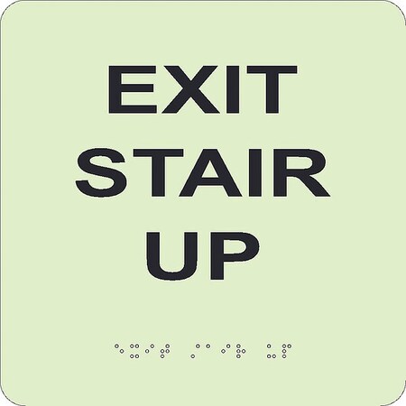 Exit Stair Up, Plastic Exit Sign8" Wide x 8" High, English/Braille, Glow-in-the-Dark