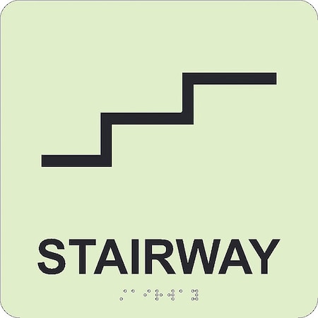 NMC GADA113BK, 8" x 8" Glow Ada Sign with Legend:"Stairway" (Pack of 4 pcs)