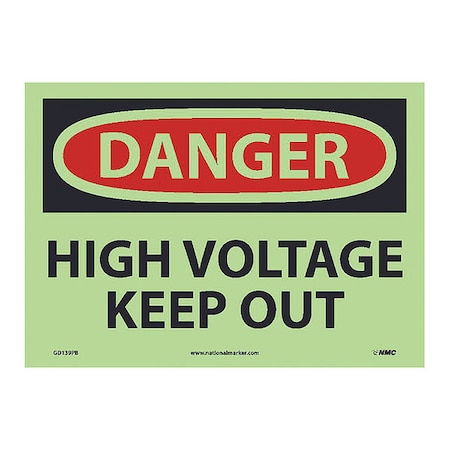 NMC GD139PB OSHA Sign, Legend "DANGER - HIGH VOLTAGE KEEP OUT", 14" Length x 10" Height, Glow Polyester, Black/Red on White