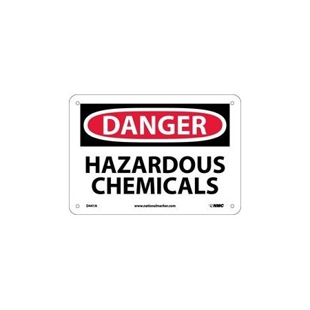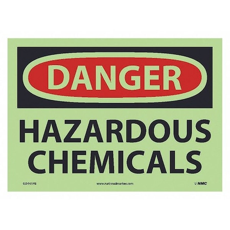 NMC GD441PB OSHA Sign, Legend "DANGER - HAZARDOUS CHEMICALS", 14" Length x 10" Height, Glow Polyester, Black/Red on White