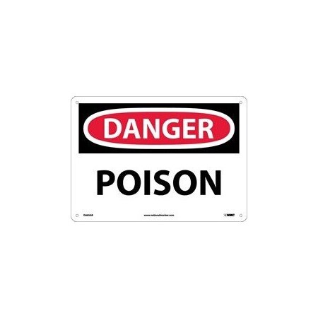 NMC GD463RB OSHA Sign, Legend "DANGER - POISON", 14" Length x 10" Height, Glow Rigid, Black/Red on White