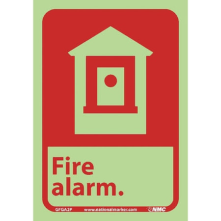 NMC GFGA2P OSHA Sign, Legend "Fire alarm" with Graphic, 7" Length x 10" Height, Glow Polyester, Red on Pale goldenrod