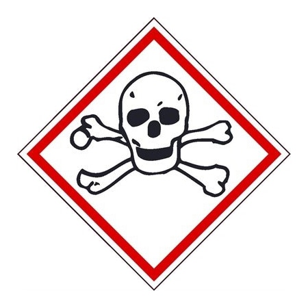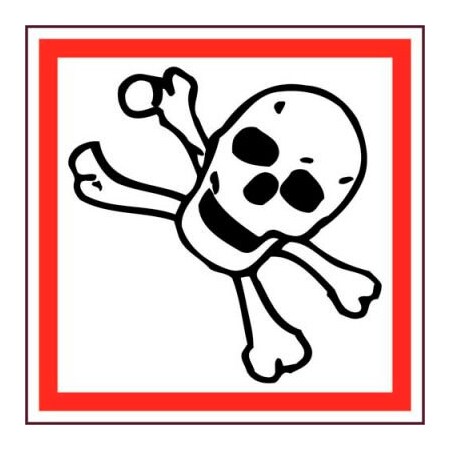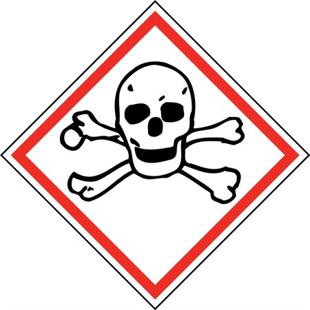 2" x 2" PS Vinyl Pictogram Toxic GHS Label 0.002 material has pressure sensitive adhesive backing and is flexible, which allows for mounting on smooth, curved or irregular surfaces. The material is long-lasting for indoor and outdoor labeling.