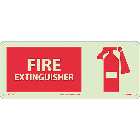 NMC GL128R Graphic OSHA Safety Sign, Legend "FIRE EXTINGUISHER" with Graphic, 17" Length x 7" Height, Glow Rigid, Red on White