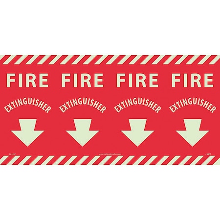 NMC GL129P FIRE EXTINGUISHER Sign – 24 in. x 12 in. Glow Polyester Fire Sign with Down Arrow Graphics, White Text on Red Base