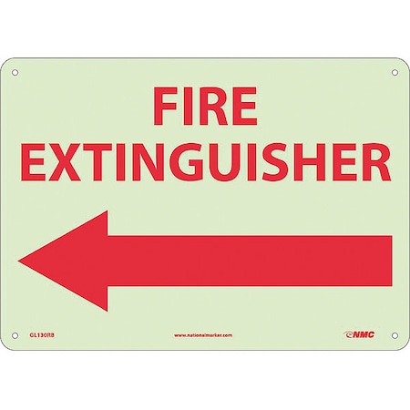 NMC GL130RB Restricted Area Sign, Legend "FIRE EXTINGUISHER" with Left Arrow Graphic, 14" Length x 10" Height, Glow Rigid, Red on White