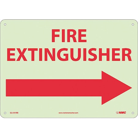 NMC GL131RB Restricted Area Sign, Legend "FIRE EXTINGUISHER" with Right Arrow Graphic, 14" Length x 10" Height, Glow Rigid, Red on White