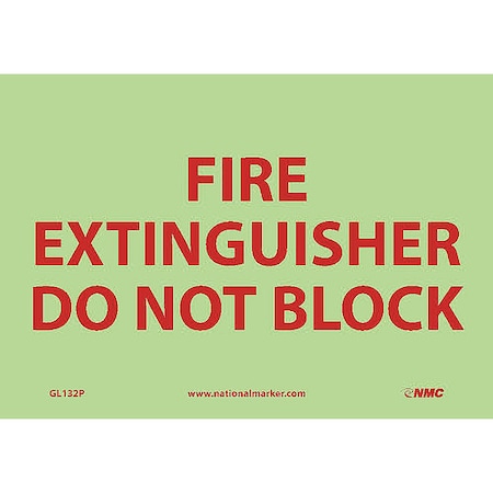 NMC GL132P Restricted Area Sign, Legend "FIRE EXTINGUISHER DO NOT BLOCK", 10" Length x 7" Height, Glow Polyester, Red on White