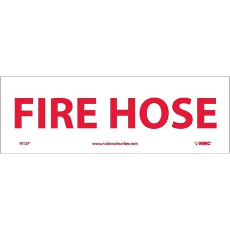 NMC GL135P Security Sign, Legend "FIRE HOSE", 12" Length x 4" Height, Glow Polyester, Red on White