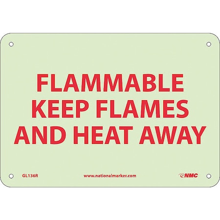 NMC GL136R Restricted Area Sign, Legend "FLAMMABLE KEEP FLAMES AND HEAT AWAY", 10" Length x 7" Height, Glow Rigid, Red on White