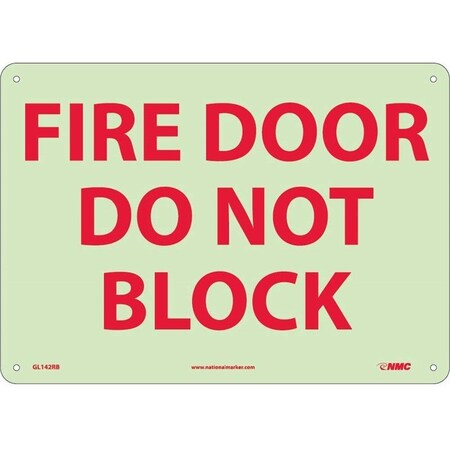 NMC GL142RB Fire Sign, Legend "FIRE DOOR DO NOT BLOCK", 14" Length x 10" Height, Glow Rigid, Red on White