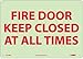 NMC - National Marker Company FIRE, FIRE DOOR KEEP CLOSED AT ALL TIMES, 10X14, RIGID PLASTICGLOW Fire Signs The location of flammable substances, fire alarms, hoses, extinguishers, blankets, and evacuation exits and routes must be clearly marked throughout your facility to not only prevent a fire, but also help ensure your employees' safety.
