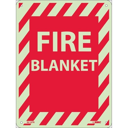 NMC GL147P Fire Sign, Legend "FIRE BLANKET", 9" Length x 12" Height, Glow Polyester, Red on White