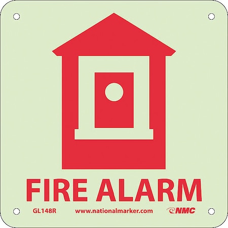 NMC GL148R Graphic See Sign, Legend "FIRE ALARM" with Graphic, 7" Length x 7" Height, Glow Rigid, Red on White