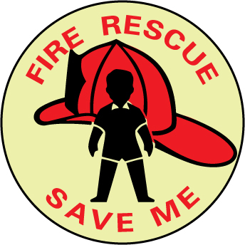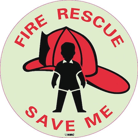 NMC GL159P 4" DIA. Fire Sign w/Legend:Fire Rescue Save Me, PS Vinyl Glow, Pack of 50 pcs
