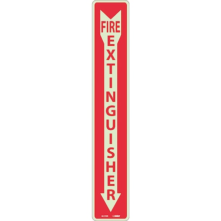NMC GL173R FIRE EXTINGUISHER Sign - 4 in. x 24 in. Glow Plastic Fire Safety Sign with Arrow, Yellow Glow on Red