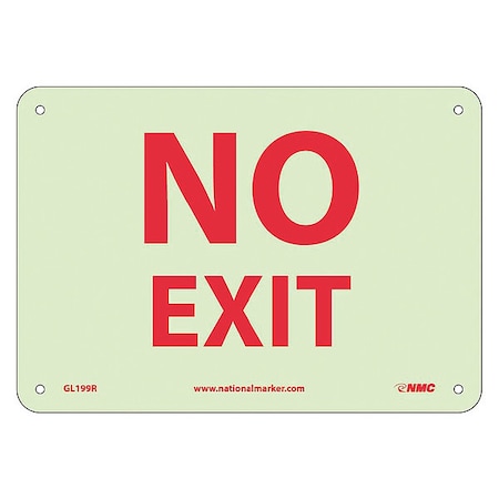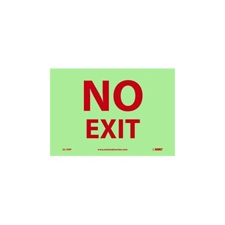 NMC GL199R Fire Sign, Legend "NO EXIT", 10" Length x 7" Height, Glow Rigid, Red on Yellow