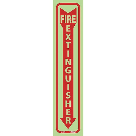 NMC GL23P FIRE EXTINGUISHER Sign – 4 in. x 18 in. Glow Vinyl Fire Safety Sign with Down Arrow Graphic, Red on Glow Yellow