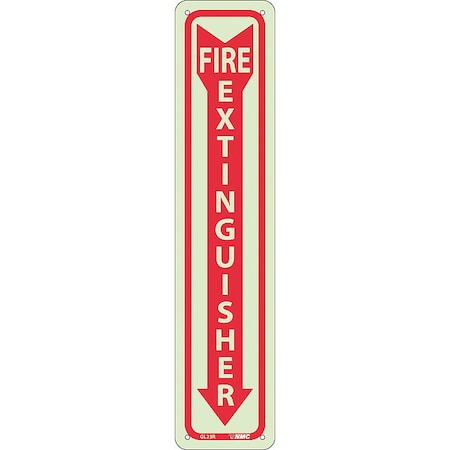NMC GL23R FIRE EXTINGUISHER Sign – 4 in. x 18 in. Glow Plastic Fire Safety Sign with Down Arrow Graphic, Red on Glow Yellow