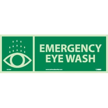 NMC GL303P Fire Sign, Legend "EMERGENCY EYE WASH" with Graphic, 14" Length x 5" Height, Glow Polyester, Yellow on Green